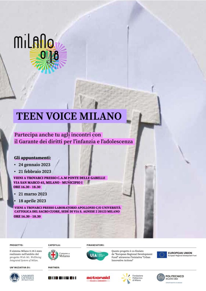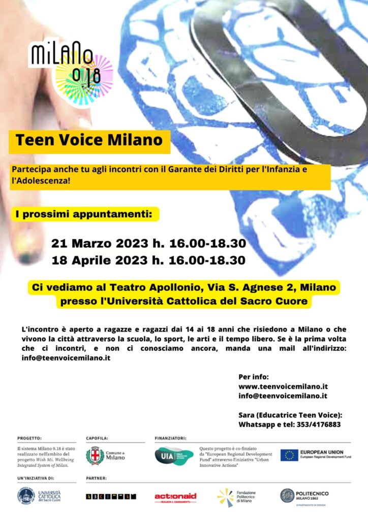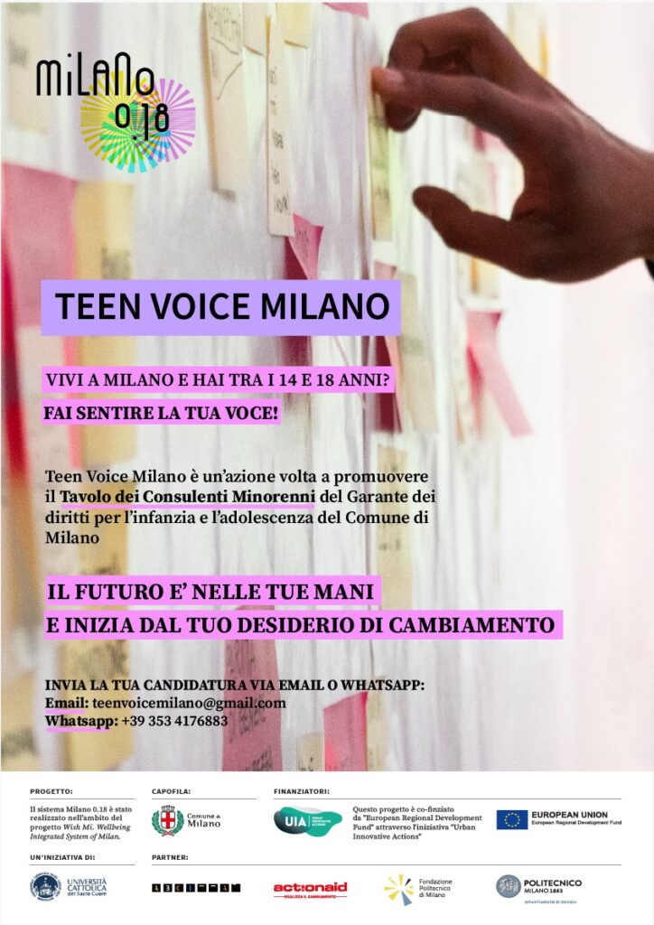 Teen Voice Milano è un'azione volta a promuovere il Tavolo dei Consulenti Minorenni del Garante dei diritti per l'infanzia e l'adolescenza del Comune di Milano
